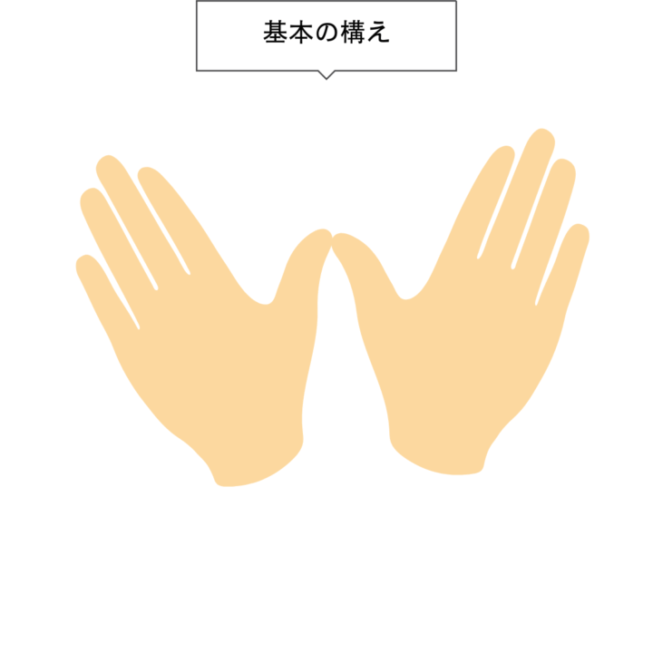まず、手を顔の前で基本の形にします。手の甲を見ながら親指をあわせる感じです。