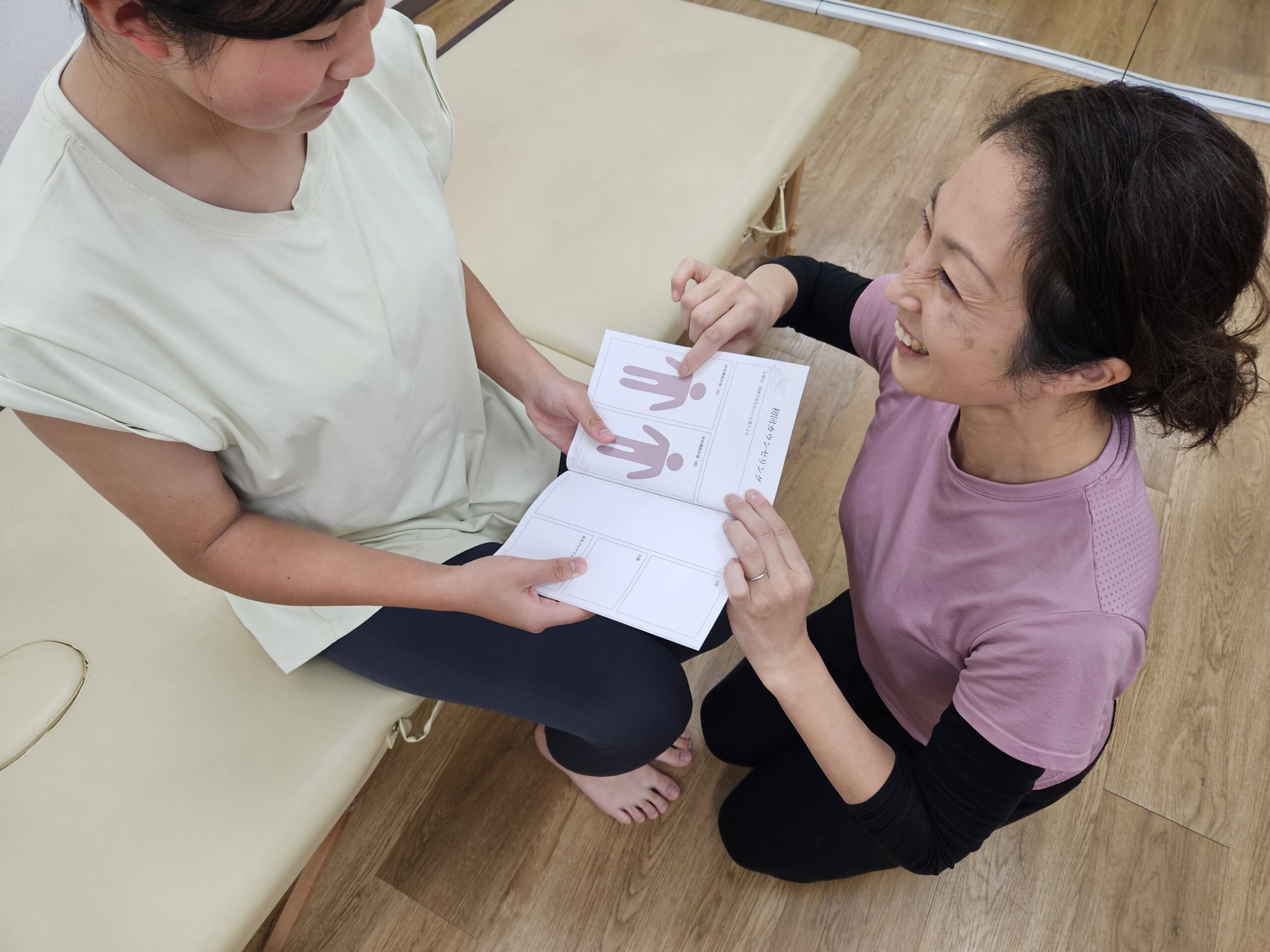 - 毎日簡単に続けられる内容でセルフケアをお伝えします。お持ち帰りいただけるケアシートをお渡ししますのでわかりやすいと好評です。